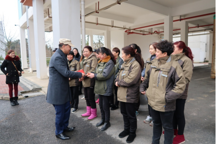 按照慰问工作安排,1月24日上午,汤健校长一行分别来到学校八鸽岩路校区、云潭南路校区,向依然坚守岗位的保安人员、物业管理人员送上新年祝福和慰问金,祝愿他们新春愉快、身体健康、阖家幸福!感谢他们“舍小家、顾大家”,感谢为保学校春节期间安全稳定默默付出、无私奉献。同时,汤校长高度赞扬他们过去一年为学校发展稳定做出的重大贡献,深切勉励他们在新的一年中继续努力工作、再立新功,为学校做出新的更大贡献。