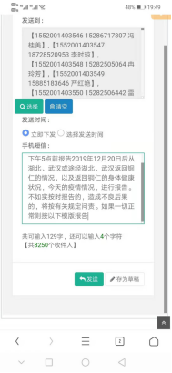 连日来,新型冠状病毒疫情牵动着全国、全省、全市人民的目光。作为一所在校生人数超8000人的学校,疫情防治战打响后,我校高度重视,积极响应市委市政府疫情防控工作,第一时间通过短信、QQ、微信等途径对在校生开展疫情宣传排查工作,据不完全统计,累计发送疫情提醒短信近万条,首日就发送短信8250条,累计排查2000余人,通知120余个QQ及微信群。