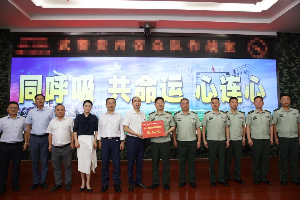 7月29日上午,我校到贵州省武警总队开展“八一”建军节慰问活动。党委副书记、校长汤健,党委副书记龚辉,党委委员、副校长于立群以及办公室、学工部、招生就业指导中心、后勤处、保卫处、宣传部等部门负责人参加慰问。省武警总队政治工作部主任刘志峰以及武警总队有关处室领导参加活动。