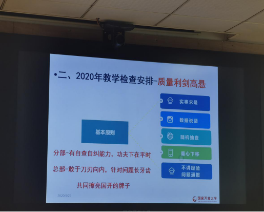 国开国家开放大学副校长林宇首先对2019年网上教学检查情况和综合教学检查情况结果进行了通报,并安排部署了2020年教学检查工作。