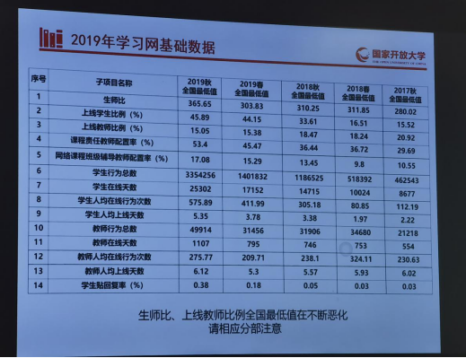 国家开放大学教务部副部长齐文鑫对2019年网上教学检查情况进行了通报,对2019年学习网基础数据和思政课程网上教学基础数据以及网络教学团队建设情况进行了详细说明,并对2020年网上教学检查的内容与方式做了安排。